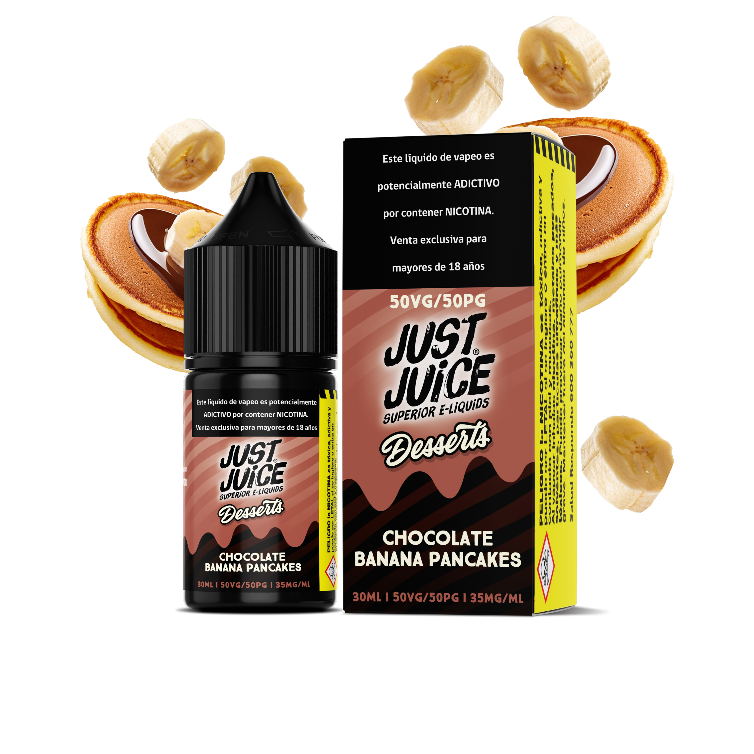Pancakes calientes con rodajas de plátano y sirope de chocolate en un solo líquido. El Chocolate Banana Pancake Salt es perfecto para quienes aman los sabores dulces y reconfortantes